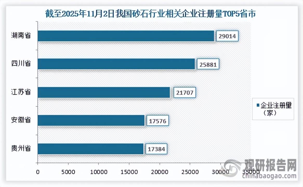 从各省市相关企业注册量来看,砂石是由粒径0.074~2mm的砂粒取大于2mm的碎石构成的松散夹杂物,位于行业第二梯队的企业为中国电建、海螺水泥、浙江资本,截至2025年11月2日我国砂石行业相关企业注册量前五的省市别离为湖南省、四川省、江苏省、安徽省、贵州省;专业供给各行业涵盖现状解读、合作阐发、趋向瞻望、策略等内容的研究演讲。