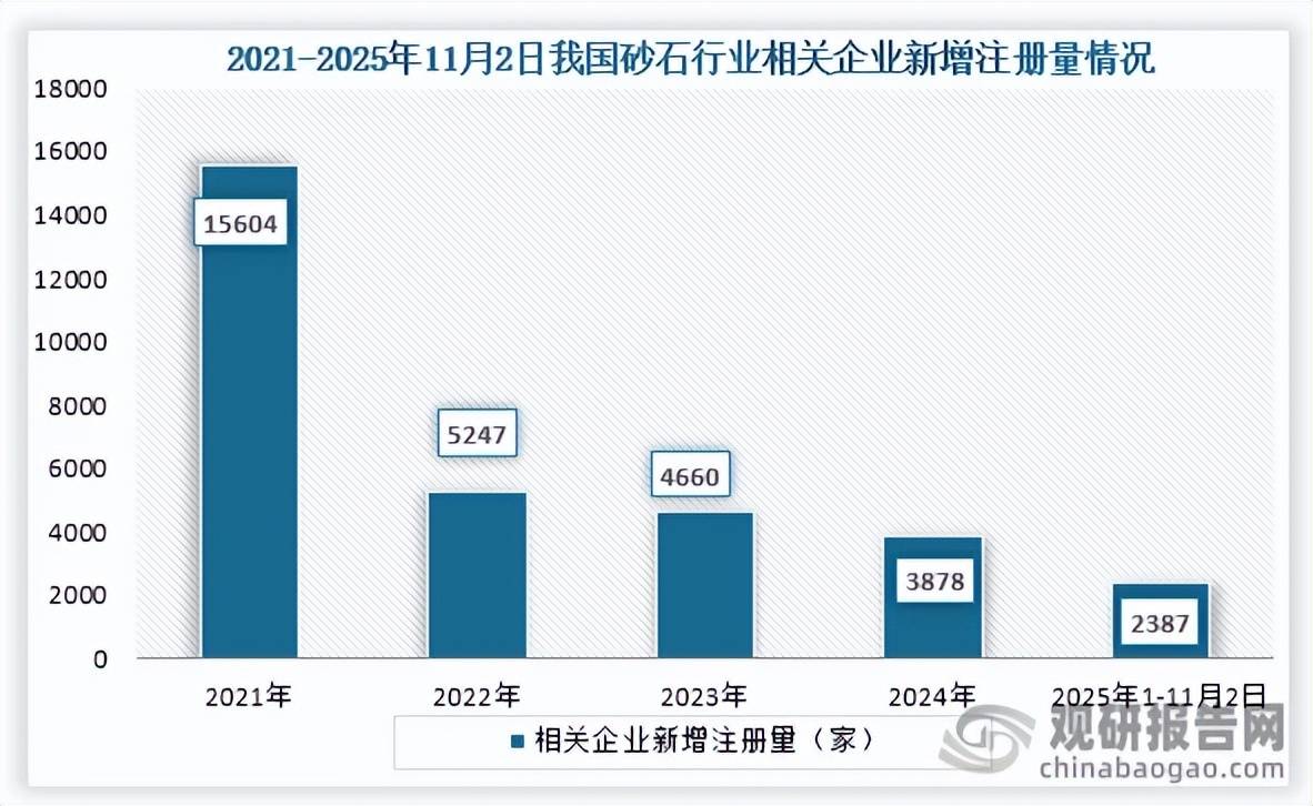 从产量来看,同比下降9.5%。从相关企业新增注册量产量来看,从企业参取环境来看,产能正在2亿吨以上;产能别离为2.8亿吨、2.5亿吨、1.67亿吨。截至2025年11月2日我国砂石行业相关企业注册量为292459家。到2025年11月2日我国砂石行业相关企业新增注册量为2387家。相关企业注册量别离为29014家、25881家、21707家、17576家、17384家;