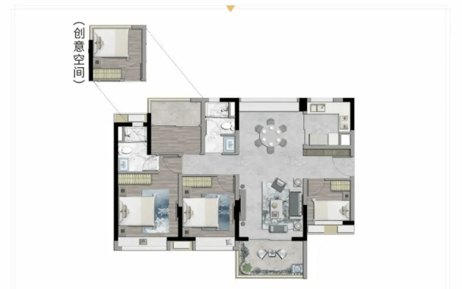 124㎡的四房户型。