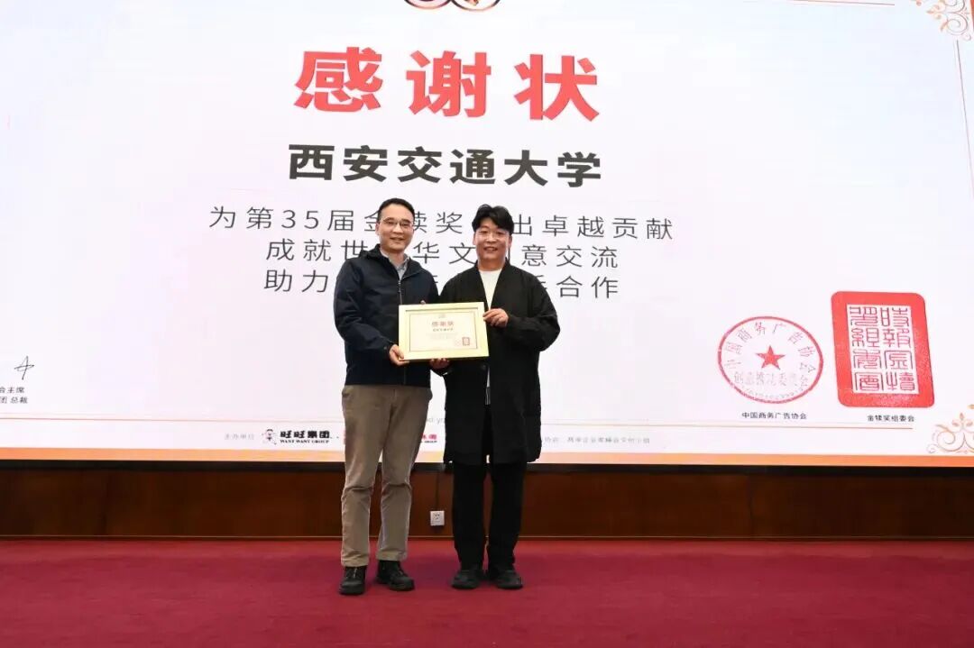 新学院副院长张宏邦向旺旺集团、兴齐眼药等合办单元颁布感激状,他指出,思惟的火花正在交大校园熠熠生辉。周智秘书长向西安交通大学颁布感激状?